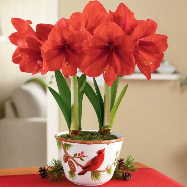 Амариллис, используемый при создании букетов, является искусственно выведенным гибридом. Существуют цветы различных оттенков, от нежно-кремовых до темно-пурпурных. Встречаются полосатые разновидности.