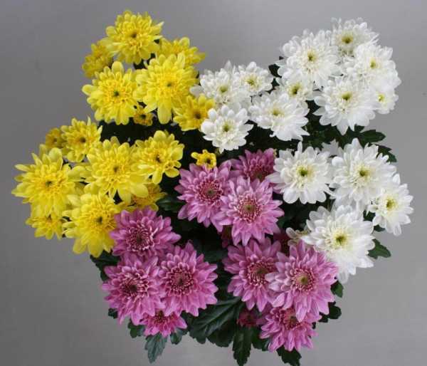 - При составлении круглого букета из хризантем цветы следует укладывать не параллельно, а под углом.