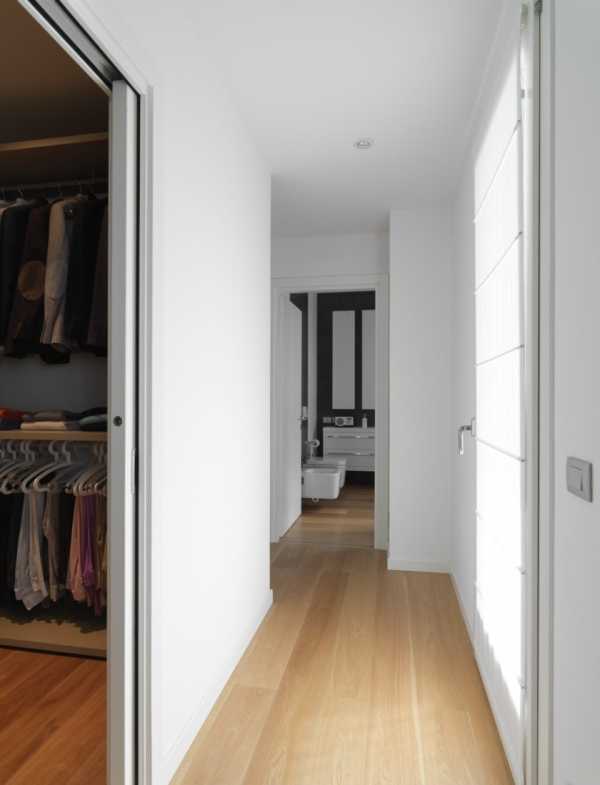 - Минимизация использования распашных дверей. В мире, где придуманы шкафы-купе, просто глупо отказаться от такого блага и выбирать для узкого коридора распашные двери.