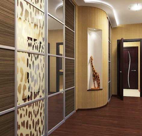 Узкий коридор со шкафом купе и зеркалом