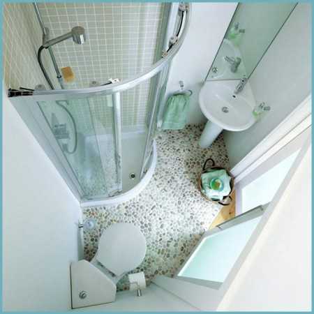 Меньше всего места займет в санузле круглая кабинка. Установив в ванной комнате угловую душевую, имеющую закругленные края, вы получите желаемую экономию пространства.