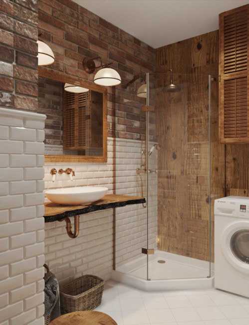 Выбрав правильную форму и метод установки, можно даже в комнате площадью 3-4 кв. м. размесить и рукомойник, и стиральную машинку, и другую сантехнику.
