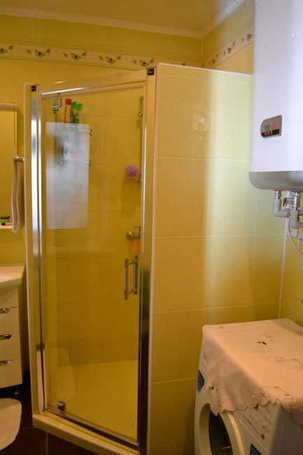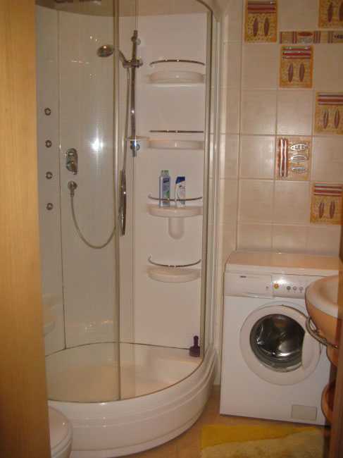 - Душ не должен перекрывать доступ к стиральной машине, не должен мешать открыванию дверок шкафов и тумбочек.
