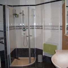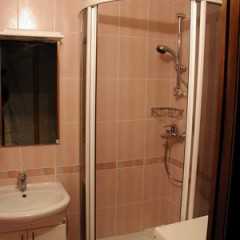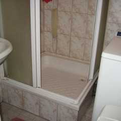 - Более приемлемый вариант – установка пристенной душевой кабины, однако этот вариант невозможен в узких и длинных помещениях ванных комнат.
