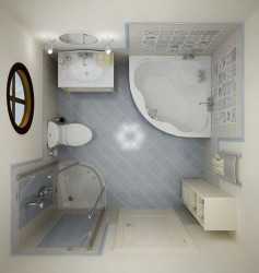 Выбрав установку в угол, вы сможете вместить в небольшой ванной и кабинку, и купель