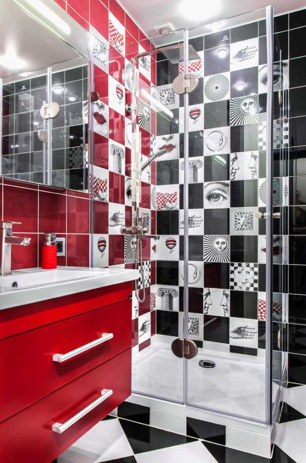 Душевая кабинка в тесной ванной комнате занимает практически все свободное пространство. Поэтому свои творческие задумки придется реализовывать непосредственно на ней.