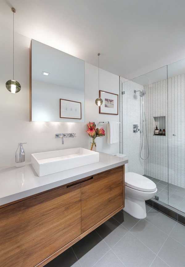 Ванная комната с душевой кабиной — отличная альтернатива, которая поможет сэкономить место в уборной. Существуют и другие хитрости, которые визуально расширят пространство. Например, использование зеркал, различных элементов декора, а также аксессуаров.