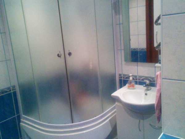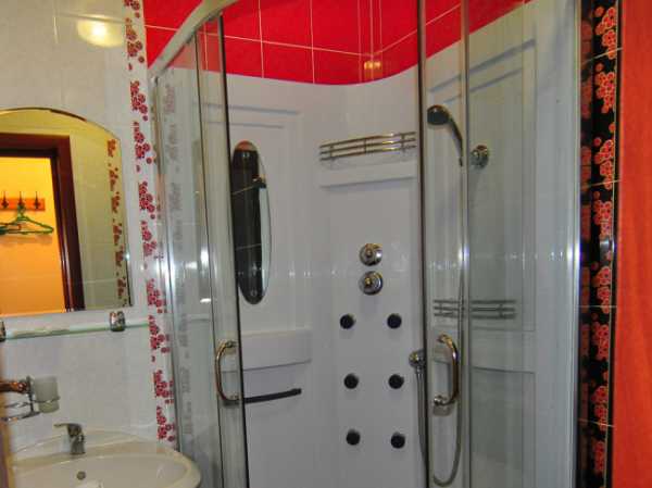- Если комната прямоугольная со входом посередине – душевую кабину устанавливают вдоль одной из длинных стен.