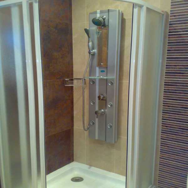 - Установка кабинки с различными современными опциями занимает столько же места, сколько и угловая ванная, поэтому для маленьких помещений этот вариант не подойдет.