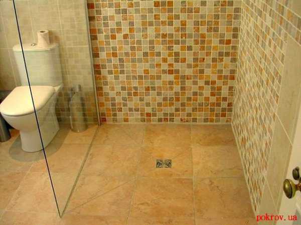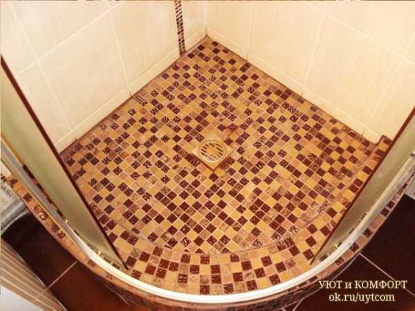 Поддон душевой кабины нужно выложить керамической плиткой, которая применялась для облицовки напольного покрытия.