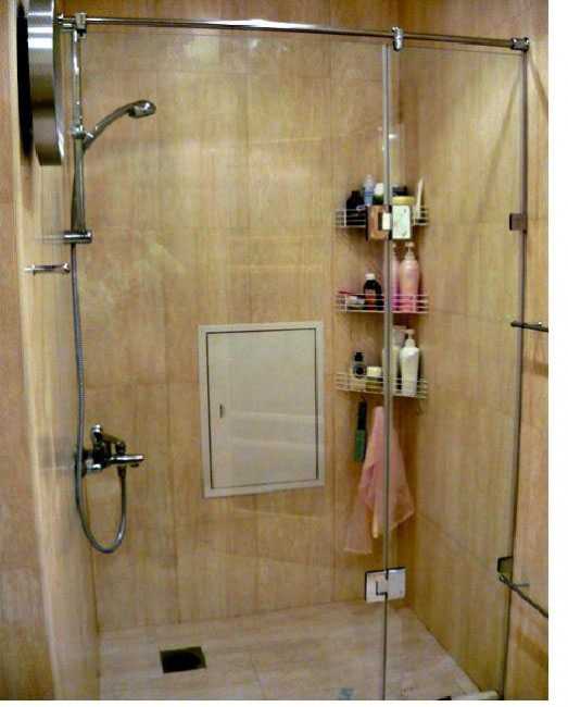 Дверь для кабинок в маленьких ванных должна быть сдвижной, створчатый вариант не подойдет.
