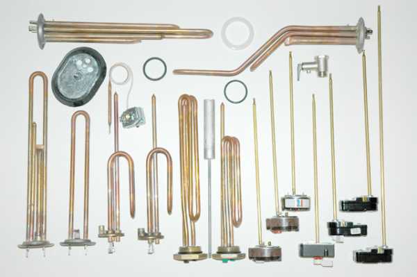 Холодная вода в баке практически во всех моделях нагревается при помощи ТЭНа, который представляет собой трубчатый элемент нагрева, состоящий из металлической трубки с электрической спиралью, находящейся внутри. Спираль и стенки трубки друг от друга изолируются диэлектрическим песком.