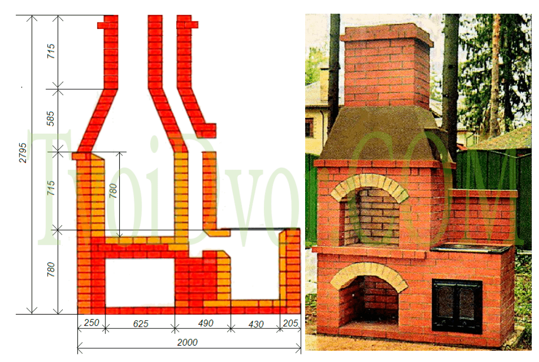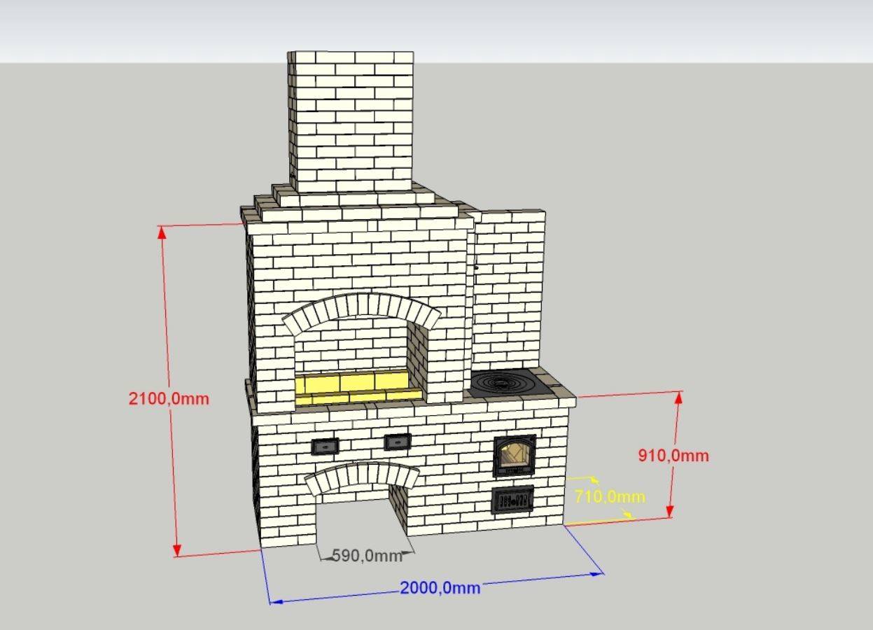 Более сложный вариант — мангал с дымоходом. Для его строительства понадобится детальная схема — порядовка.
