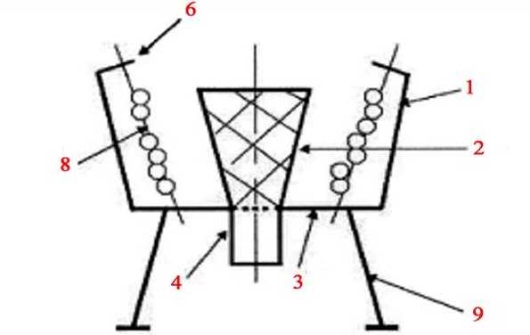 Необычный очаг представляет собой короб, внутри которого установлена сетка с топливом. Продукты горения устремляются вверх, не попадая на шампуры с мясом, которые установлены вокруг жара в центре. Небольшое расстояние от раскаленных углей позволяет подрумянивать мясо с той стороны, которая обращена к жару, остальные прогреваются от металлической стенки внешнего кожуха и горячего воздуха внутри короба. Поворачивая каждый вертел, можно добиться прекрасной румяной корочки на всей поверхности шашлыка.