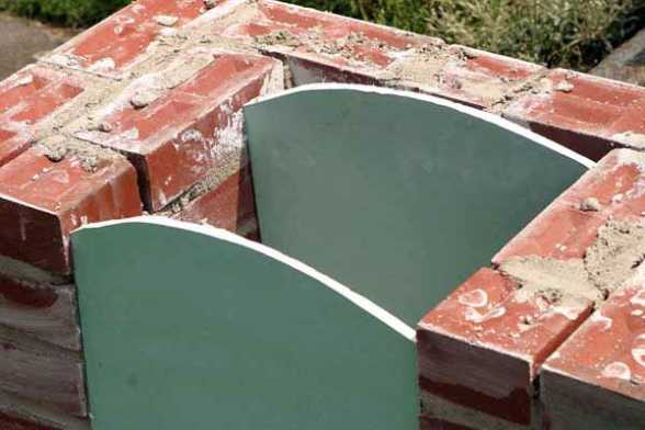 - по 15-й ряд выкладывается топливник из шамотного кирпича. Вырезается и устанавливается кружало для формирования свода;