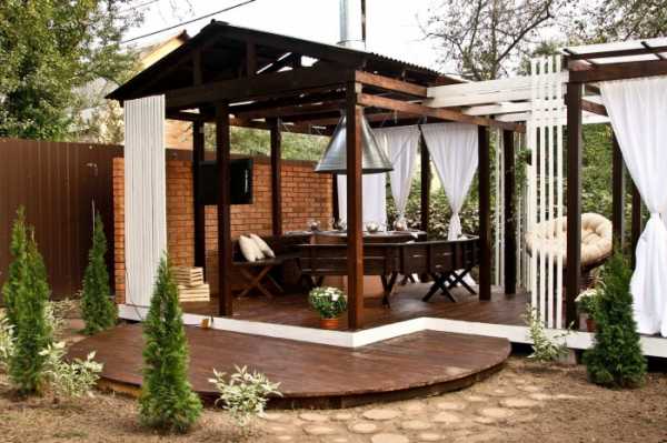 - При топке печи или жаровни дым остается внутри беседки. Это вовсе не говорит о неправильном устройстве вытяжке. Это говорит о низкой температуре дыма. В этом случае плотность продуктов горения и воздуха совпадает, и они остаются на одном уровне. Проблема решается сама собой: после повышения температуры горения дров, дым нагревается и улетучивается.