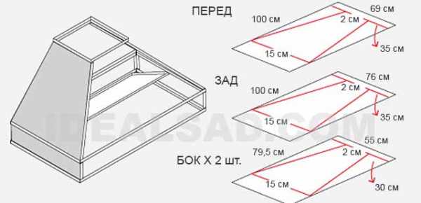 Вытяжной зонт – несложная конструкция. Для беседки можно приобрести уже готовое изделие, а можно изготовить собственными руками. Сборку зонта лучше начинать с проекта. Важно, чтобы периметр входного отверстия вытяжки был минимум в 2-3 раза больше периметра мангала.