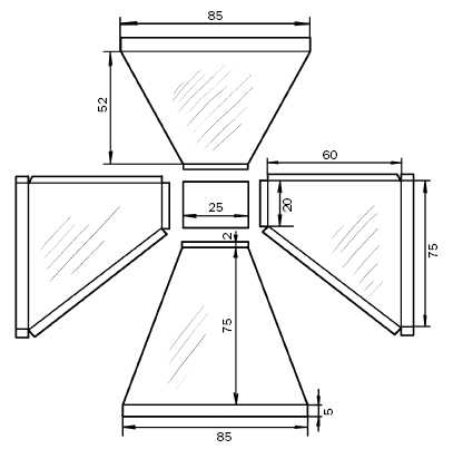 - Перед обшивкой купола вытяжки добавляем внутрь по диагонали металлическую пластину, которая будет способствовать улучшению тяги. Этот пластина представляет собой металлический лист размером 99х34 см с 2 см кромками по краям, за которые она крепится в нижней части купола.