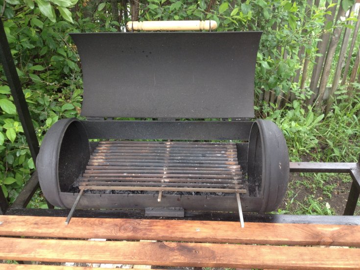 Также можно вместо прорезей для шампуров наварить пруток. Обычно так делается, если диаметр достаточно большой.