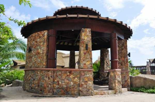 Главным является найти такое место, чтобы беседка находилась вдали от газопроводов, не было наличия рядом пышной и высокой растительности. Для такой беседки важно подобрать, из какого материала строить: из камня своими руками или же деревянную. С целью безопасности, конечно же, лучше создавать строение каменного характера, так как сможете уберечь её от пожара.