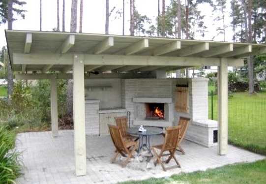 - Оборудованная камином беседка предназначена больше для обогрева, чем для приготовления пищи.