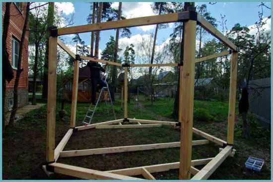 - Доступность материала и удобство сборки. Каждый может самостоятельно построить себе беседку без помощи профессионалов.