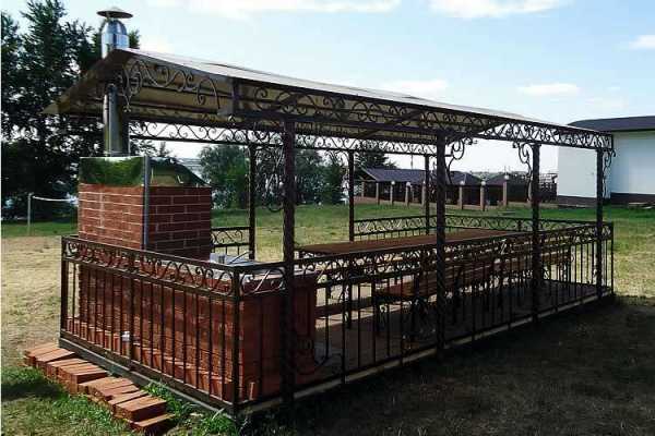 Садовые беседки с мангалом и барбекю являются самыми распространёнными, так как металл всегда кажется более аккуратным и миниатюрным по сравнению с другим материалом. Такая постройка будет ощущаться для любимых как крепость.