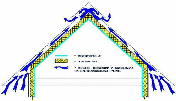 Схема вентиляции крышиУстройство мансардной крыши должно обеспечить максимальную легкость конструкции. Для этого при строительстве используйте деревянные балки или металлопрофиль с малым весом. Не используйте тяжелые материалы, такие как камень, бетон и т.д.