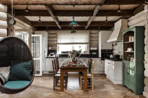 Потолок, декорированный деревянными балками, привнесет в интерьер уюта и тепла, и создаст необычные оптические эффекты на потолочном пространстве.