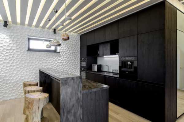 - Если высота помещения позволяет, можно сделать зонирование при помощи создания многоуровневого потолка с подсветкой в отдельных зонах.