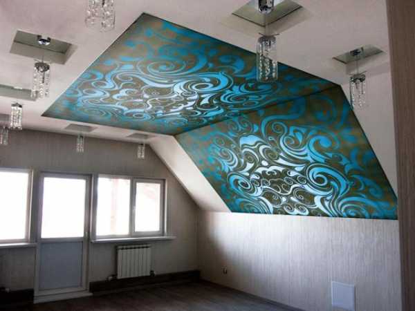 Такой треугольный или трапециевидный потолок выглядит более оригинально и поэтому требует особого эстетического оформления.