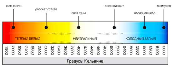 - цветовая температура указана для выбора необходимого цвета свечения;