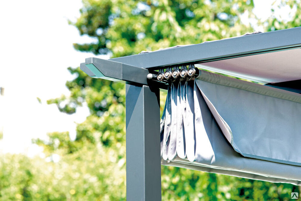 Металлические части конструкции покрыты специальной краской с защитой от коррозии. Ткани стойкие к выгоранию и любым погодным условиям. Тенты и навесы можно снабдить антиветровыми стойками, выдвижными воланами, дистанционным управлением.