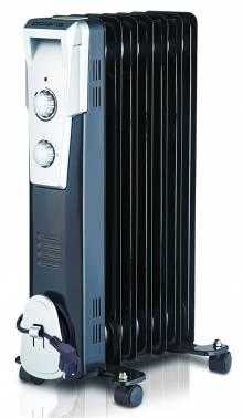 Спиральный нагревательный элемент обогревает 9 секций, наполненных минеральным маслом. Прибор оборудован 500 Вт вентилятором, таймером, термостатом, регулятором температуры и защитой от перегрева. Легко перемещается на колесах. Работает с максимальной мощностью в 2,5 кВт.