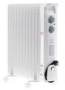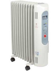 Модель состоит из 11 секций. Мощность прибора равна 2,5 кВт. Возможно три режима эксплуатации. Масляный обогреватель с вентилятором, сделанным из керамики, за короткий сок обогреет помещение, сохранив в нем естественную влагу. Достаточно установить нужный режим эксплуатации и прибор будет обогревать помещение до требуемой температуры воздуха. Автоматическое включение и отключение обеспечивает термостат. Легкое перемещение прибора осуществляется с помощью колес.