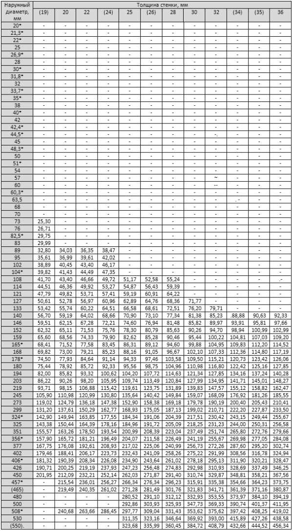 Масса труб стальных таблица – .