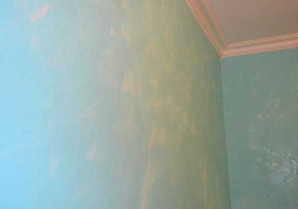 Неплохой вариант с хорошим эффектом. Не слишком тяжелая техника дает надежду, что венецианская штукатурка будет выглядеть нормально даже если ее наносил новичок без навыков. Но предварительно протестируйте все на «фанерке».
