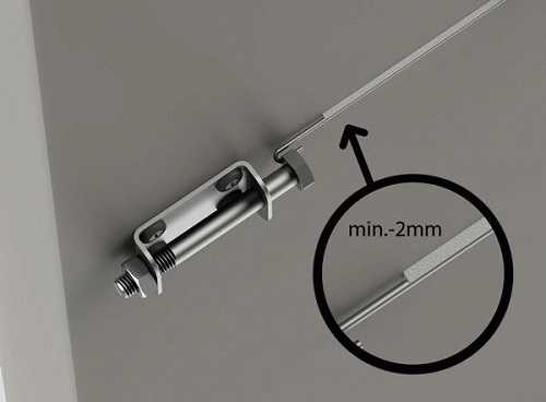 Еще одним интересным решением являются струнные маяки. Они представляют собой несколько саморезов, между которыми натянута проволока. Первым делом сверлят отверстия, после чего устанавливают в них дюбели. В них устанавливают саморезы так, чтобы шляпки находились на одном расстоянии от покрытия. Затем натягивают проволоку.
