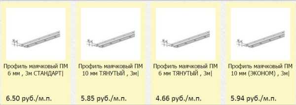 В продаже можно встретить несколько видов маячков для штукатурки. Общепринятое название их «Профиль маячковый». Для их изготовления применяются различного вида материалы: