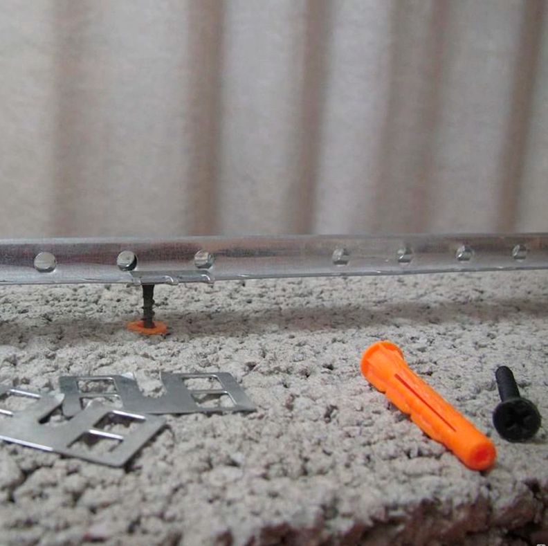 Так же чтобы выставлять профиль можно применять саморезы установленные в дюбель. С применением шурупов очень легко подстроиться под выбранный уровень и осуществлять регулировку высоты.