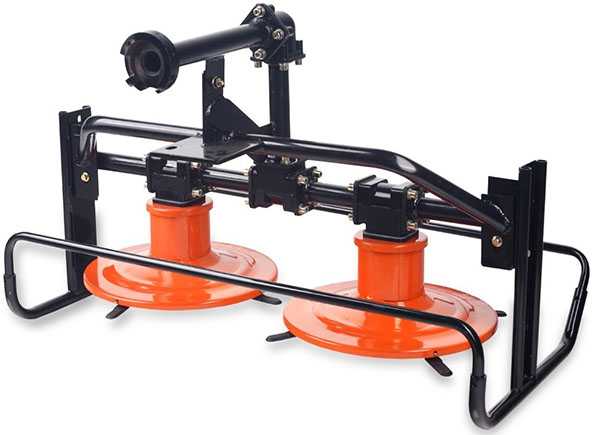 Использование вместо ручной косы навесного инструмента сбережёт силы и время. В зависимости от профиля и ровности участка выбирают сегментную или роторную косилку.