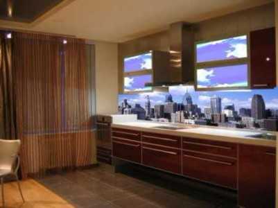 Модной тенденцией в последнее время стало применение фото в интерьере. Фотопечать широко используется для декора стеклянных фартуков, устанавливаемых вместо привычной керамической плитки.