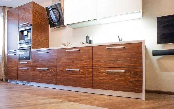 - Особое внимание нужно обратить на фасады из МДФ, поскольку они во многом определяют долговечность всего покрытия. Лучше выбирать алюминиевый профиль. Нежелательно выбирать кромки из меламина ввиду их непрочности.