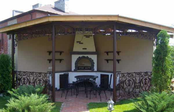 Такие беседки могут быть как открытого, так и закрытого типа. Преимущество в том, что в них можно разместить стационарный мангал или барбекю.