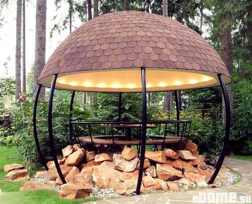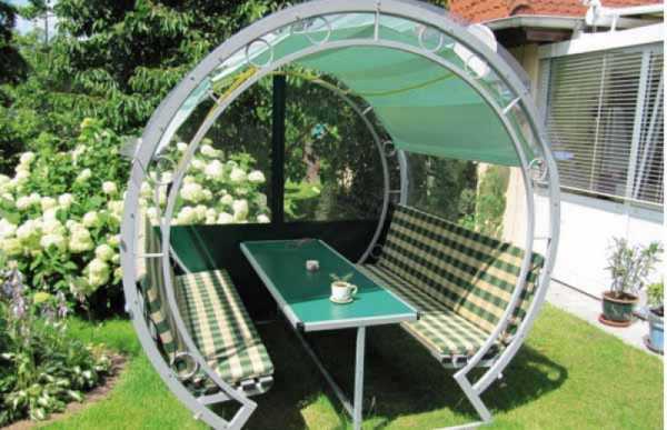 Современная металлическая беседка сокращает этот разрыв между удобством и красотой. Подождем, когда такой вариант беседки будет подешевле и станет доступен всем.