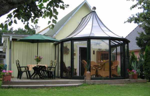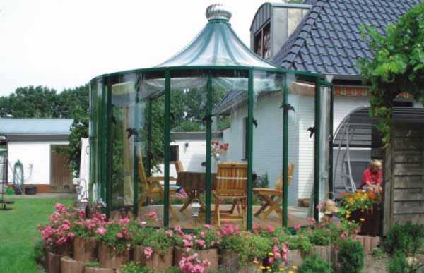 Беседку с теплым остеклением можно использовать как веранду.