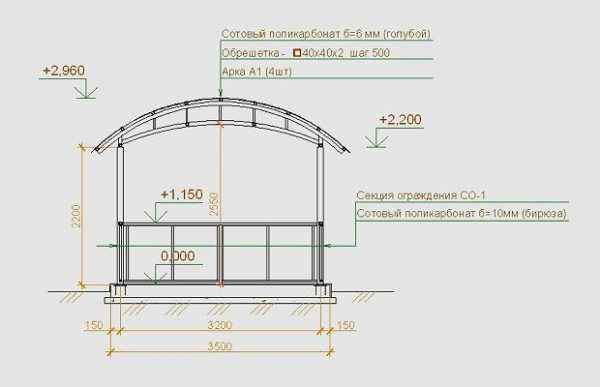 Эскиз сооружения для сада с размерами всех элементов
