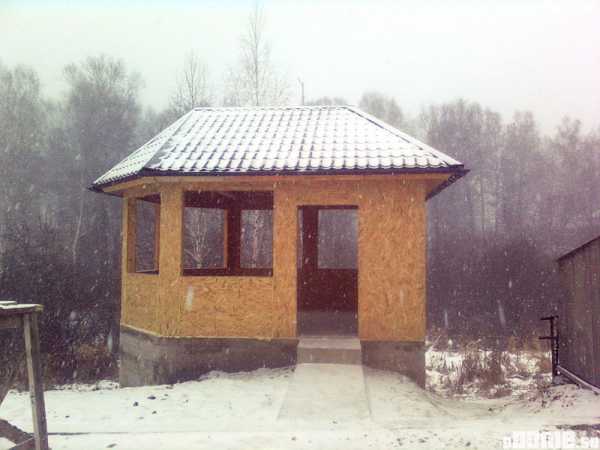 Вам надо возвести фундамент (это могут быть простые опорные блоки в виде кирпичей, так как сип-панель очень легкий материал). А затем вырезать или заказать панели необходимых размеров. Крепятся они при помощи саморезов.
