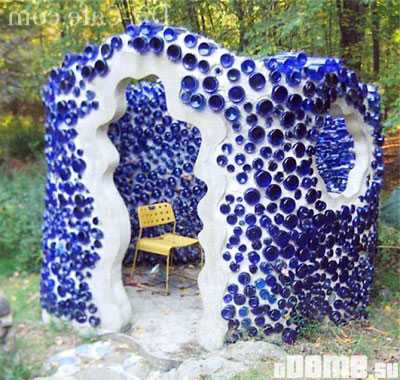 Беседка из стеклянных бутылок и цементного раствора