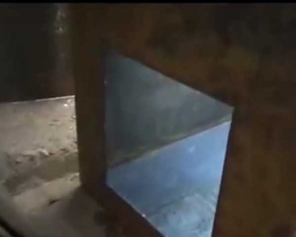 7. В нижней части третьего короба, в котором будут находиться камни, вырезаются 2-4 отверстия под трубы (количество труб может быть произвольным) на расстоянии не менее 5 см от нижней части куба для улучшения тяги. На них будет устанавливаться куб с тяжелыми камнями.
